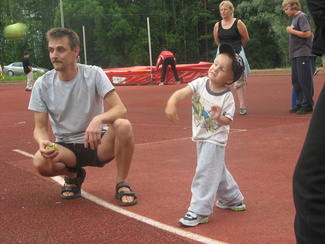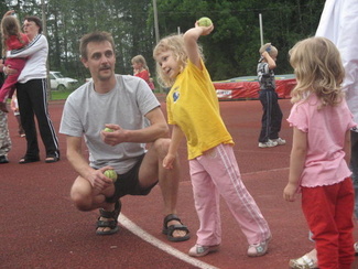 Napakasti lentää pallo Vilho Jokelan kädestä.