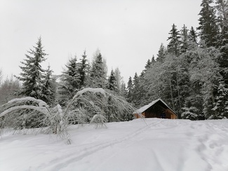 Lisälenkillä olevan laskun alla pulkkamäki, kannattaa olla tarkkana. Lasku kaartuu jyrkästi vasemmalle ja on toisinaan vauhdikas. Pulkkamäen päällä kotalaavu, joka kaikkien vapaassa käytössä. Omat puut.